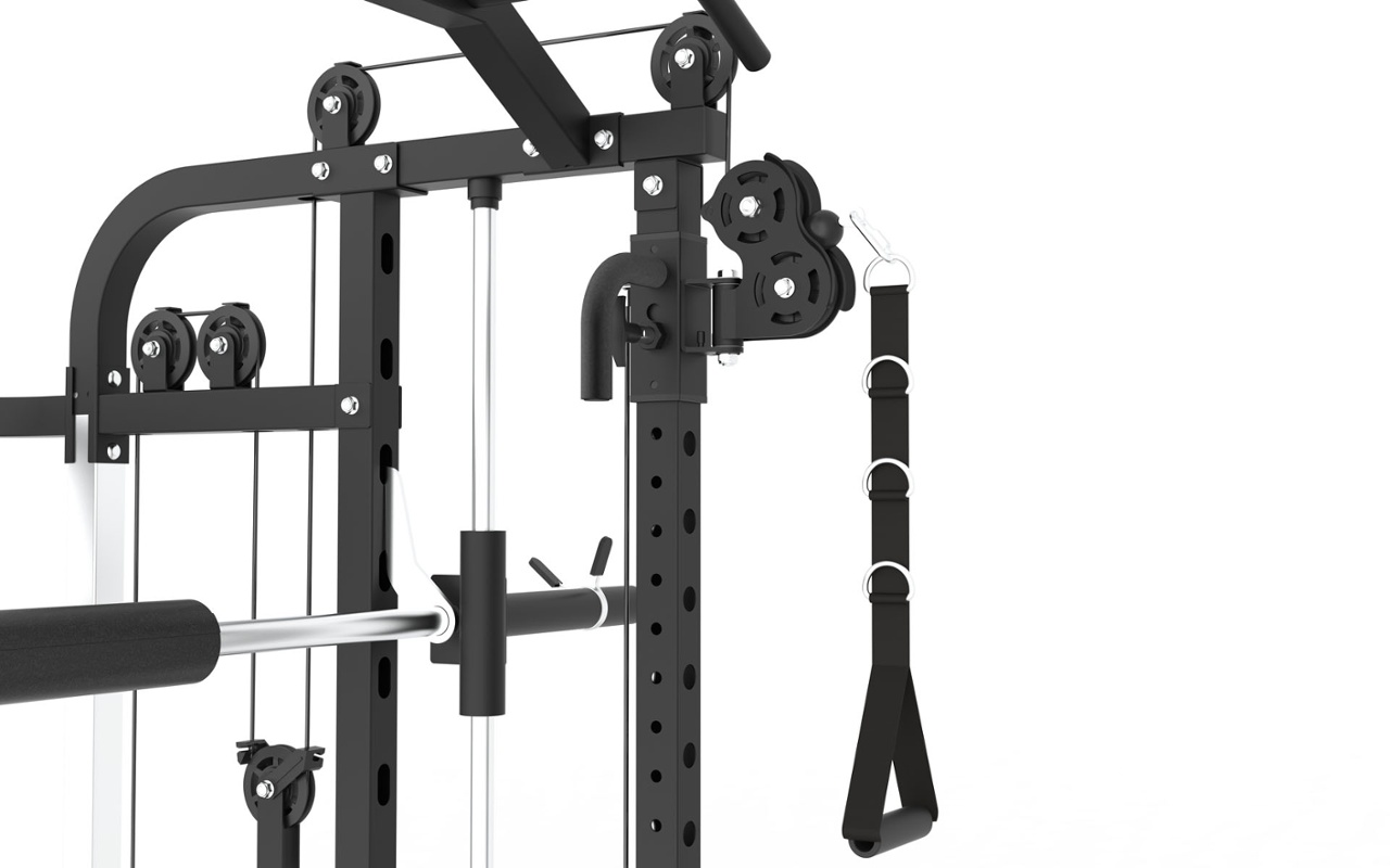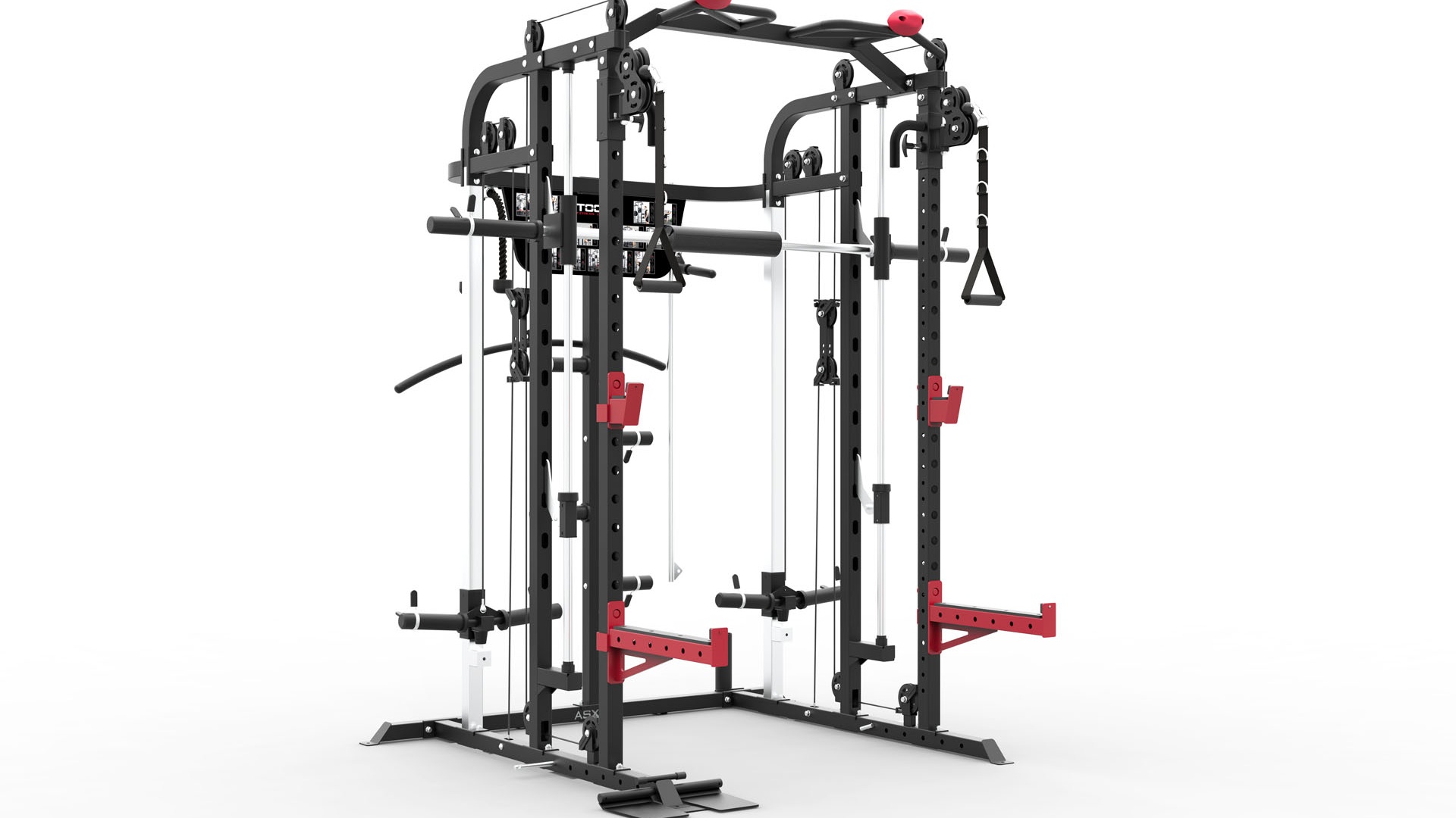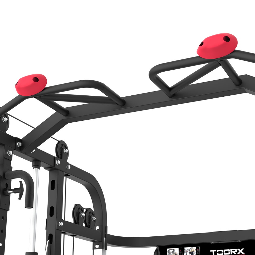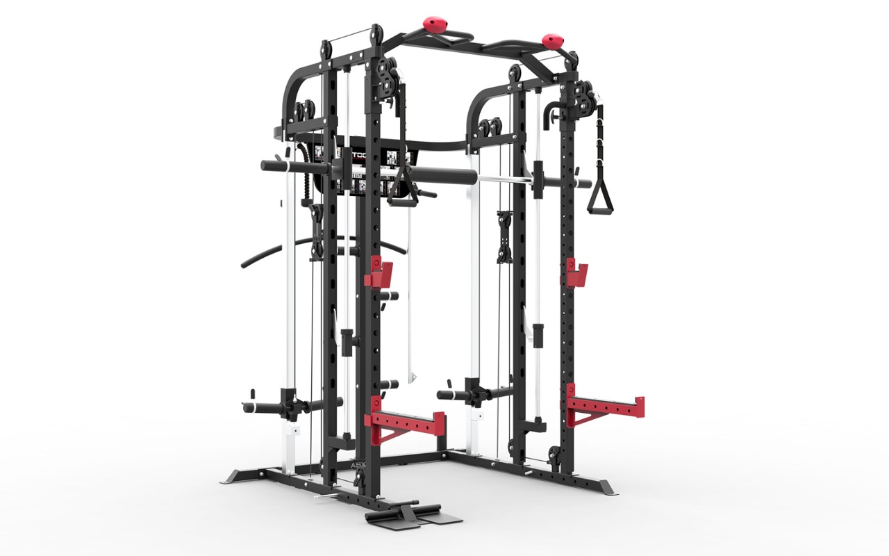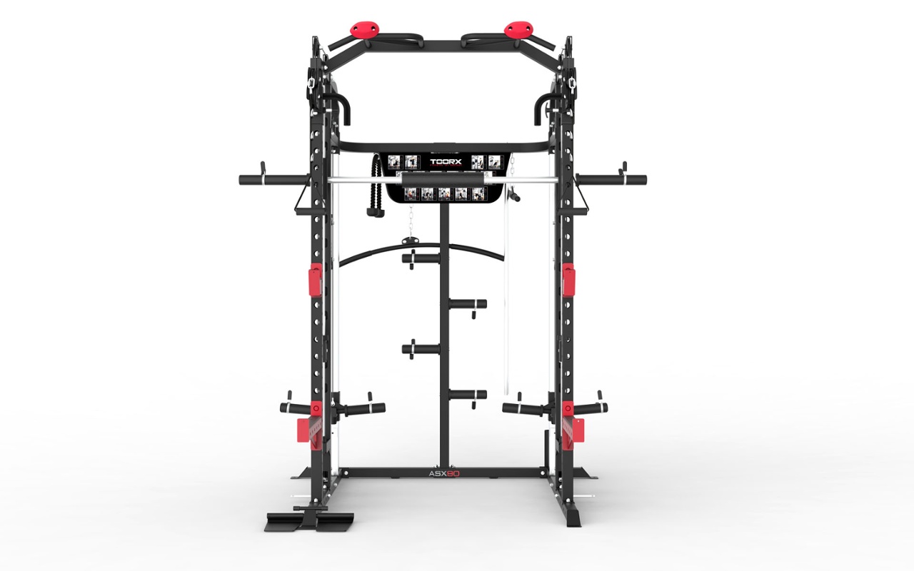 The ASX 90 is the entry-level model in Toorx's wide range of all-in-one machines. This versatile 3-in-1 machine combines a dual pulley, a disc-loaded Smith machine and a fully equipped functional rack in a single unit.