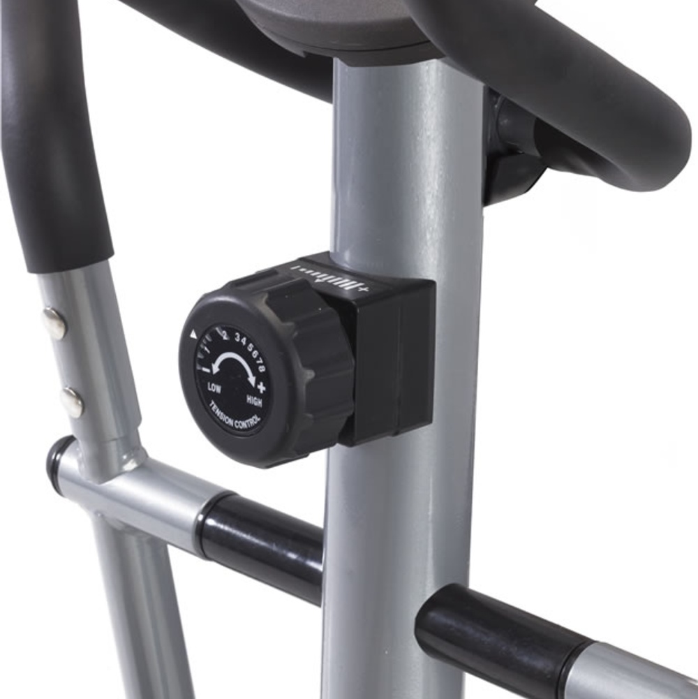 Sistema di frenaggio magnetico con regolazione manuale dello sforzo su 8 livelli. Massa volanica peso 8 kg. Peso massimo utilizzatore 110 Kg. HAND PULSE.