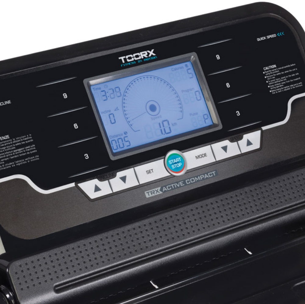 velocità - frequenza cardiaca - distanza - tempo - inclinazione - consumo calorico - programma in esecuzione |