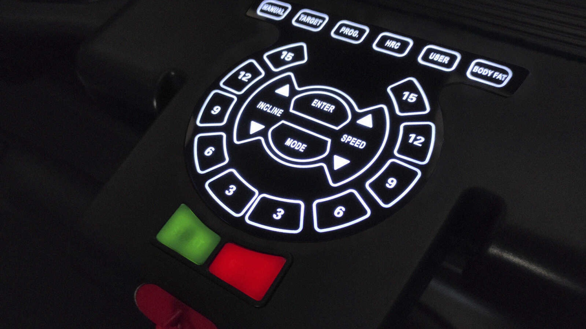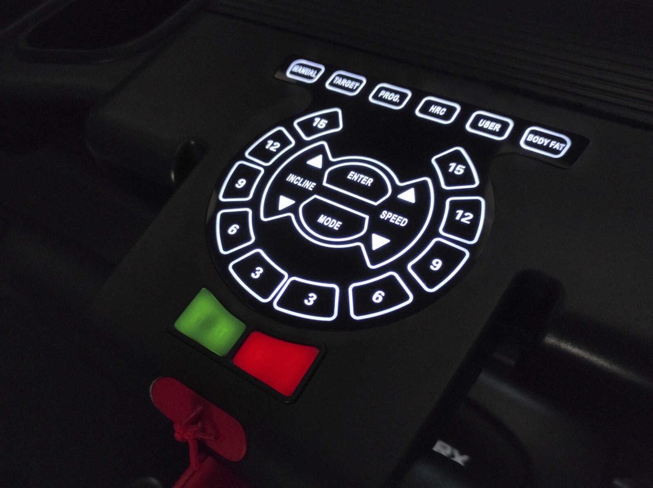 speed, incline, pulse, distance, time, calories, step, pace, current working program. Cockpit with capacitive touch screen technology. |