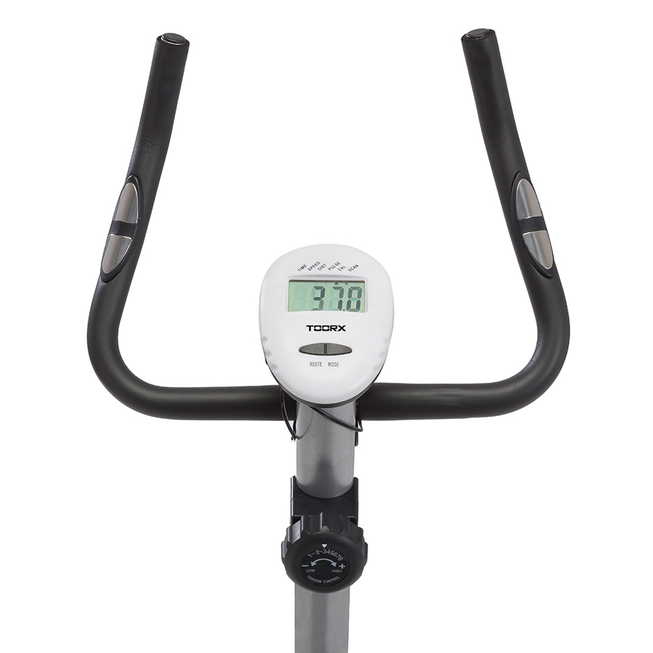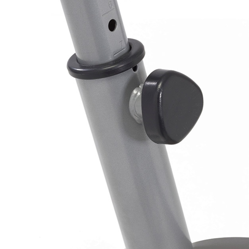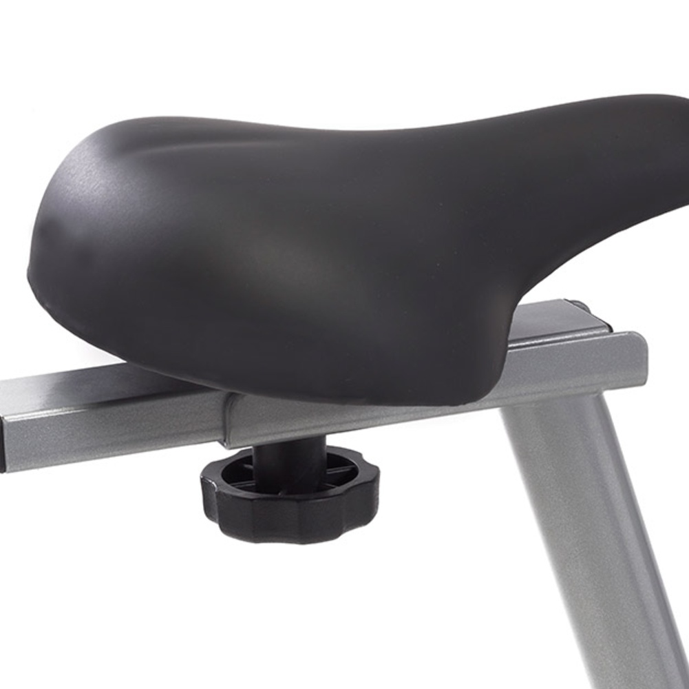 Sistema di frenaggio magnetico con regolazione manuale dello sforzo su 8 livelli. Massa volanica peso 5 kg. Peso massimo utilizzatore 100 Kg. HAND PULSE.