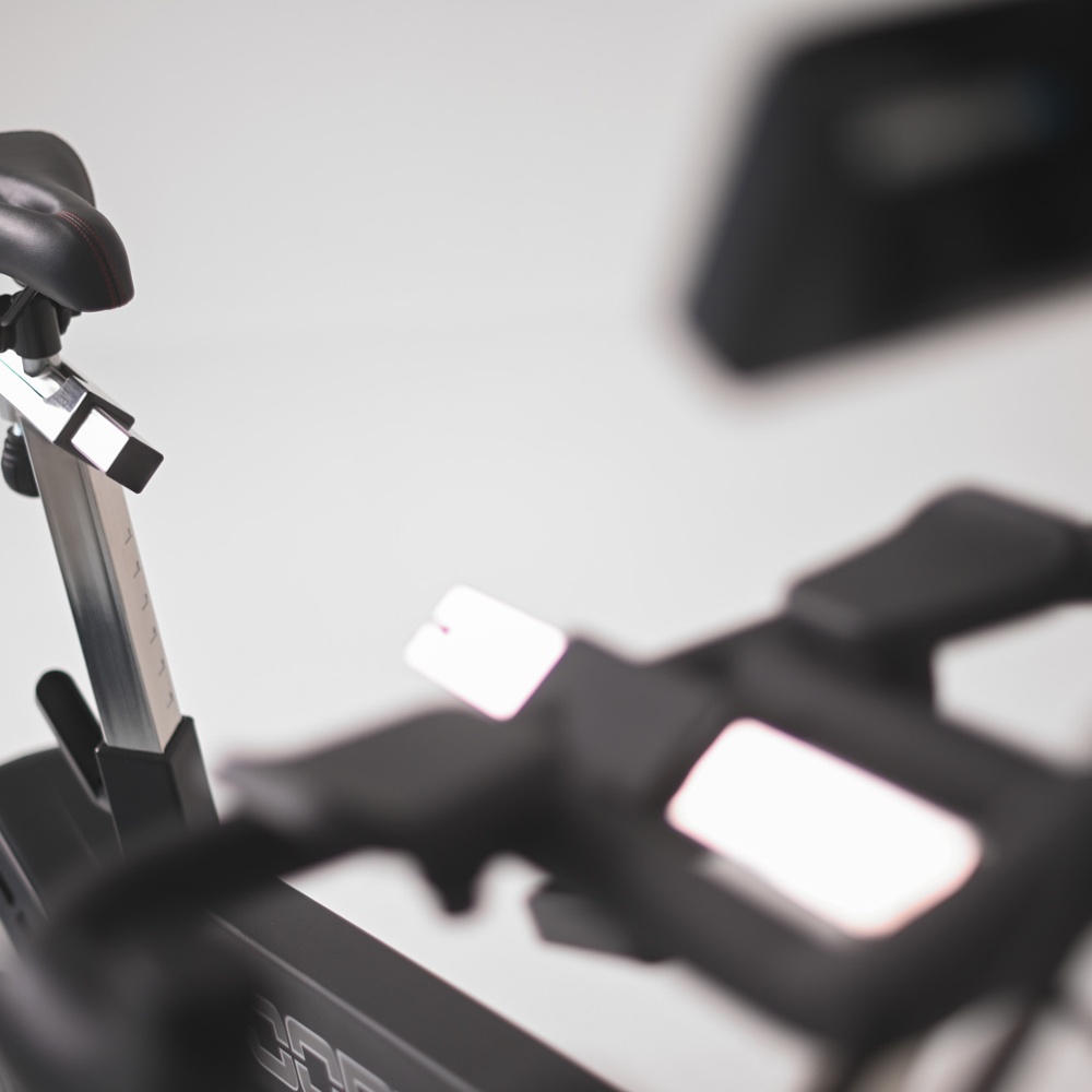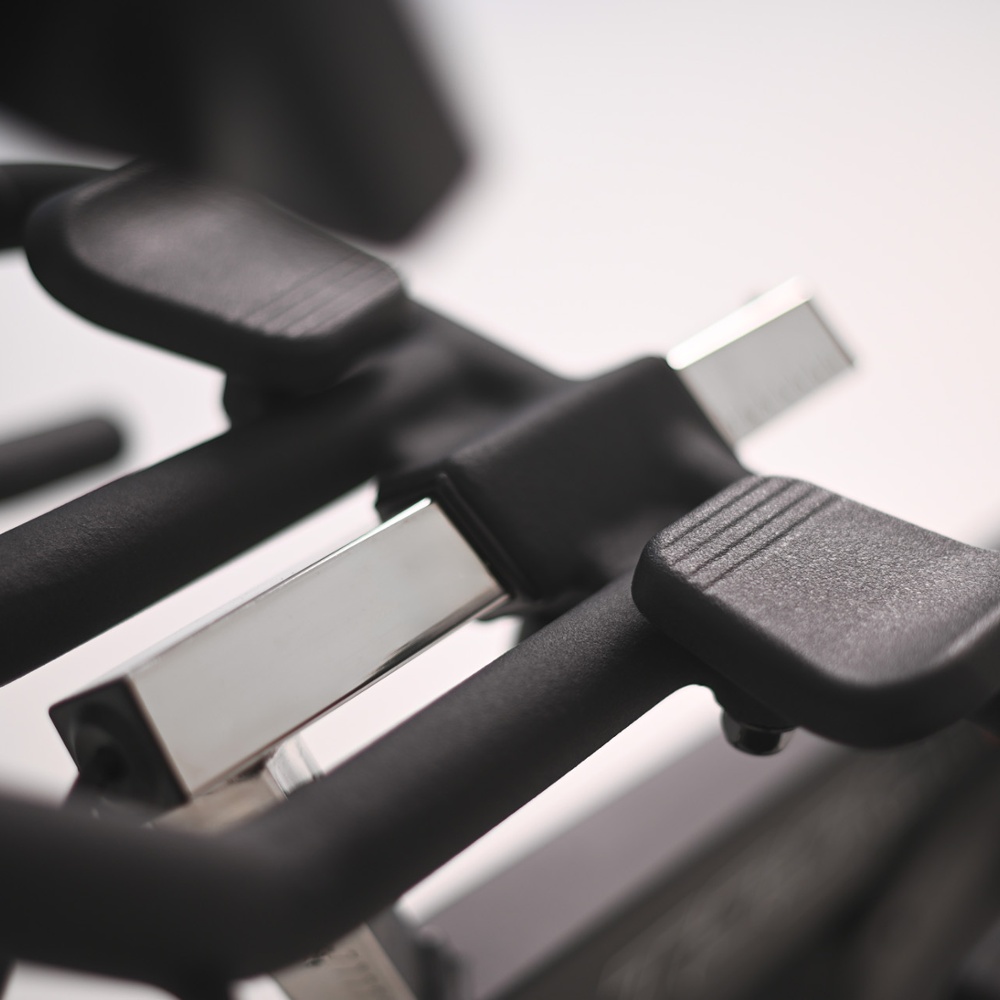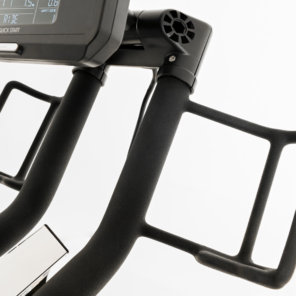 | Manubrio | Progettato per offrire tutte le prese tipiche del ciclismo: posizione su orizzontale, mani basse, leve e time trial. Per quest'ultima, sono previsti due supporti ruotabili per appoggiare gli avambracci. Questo permette una simulazione accurata della posizione da crono. I supporti possono essere ruotati in posizione di riposo, consentendo così una presa comoda senza interferenze con le mani nelle prese non TT (time trial). Il corpo manubrio comprende anche 2 porta borraccia laterali e facilmente raggiungibili durante l'esecuzione dell'allenamento. Regolazione verticale e orizzontale micrometrica |
