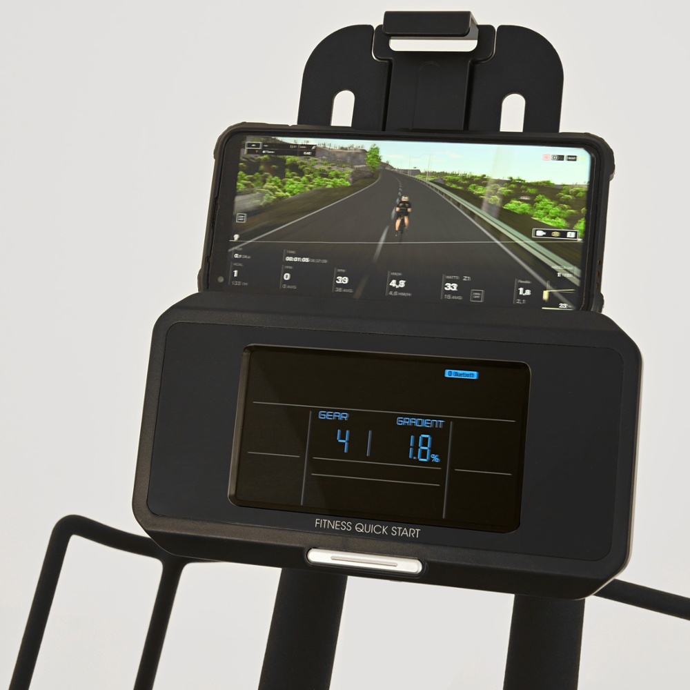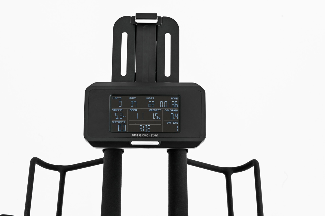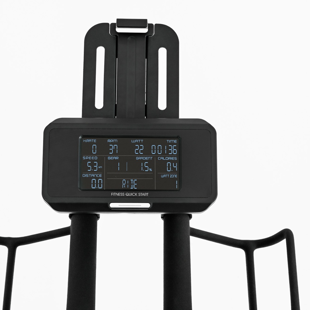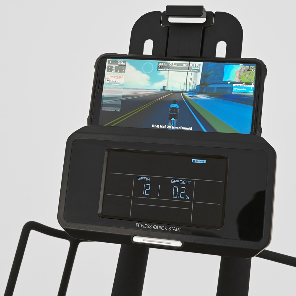 | Informazioni | tempo, RPM, velocità, calorie, Watt, HR Zone, Watt Zone, SP, VI, SV, EPV. Inclinazione: sincronizzata ed interattiva (APP) in modalità bike. |