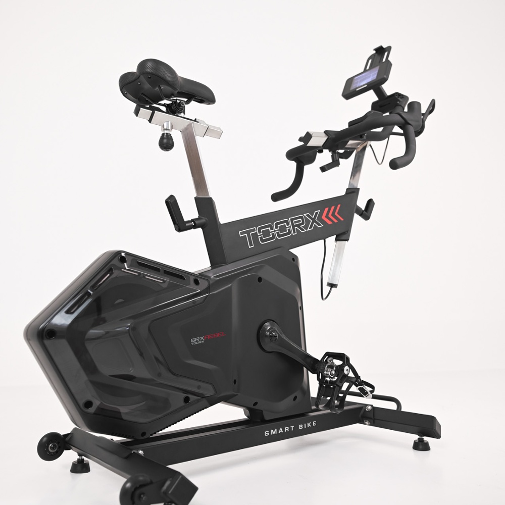 SRX REBEL, SMART BIKE ergometro, con freno ad induzione a doppia bobina, grazie alla simulazione di 24 rapporti virtuali (Livello 1 Shimano 34-30, livello 24 Shimano 50-11) e dell’inclinazione fino al 15%, alle sue multi regolazioni micrometriche e all’interazione con tutte le APP più apprezzate nel settore ciclo, quali ZWIFT, BKOOL, ROUVY, KINOMAP, FULLGAZ, WAHOO, etc., è un’alternativa ideale alle smart bike dei marchi più blasonati, essendo in grado di soddisfare le aspettative prestazionali degli utilizzatori più esigenti (fino a 2000 WATT di potenza) garantendo un significativo risparmio economico, pur senza alcuna rinuncia.