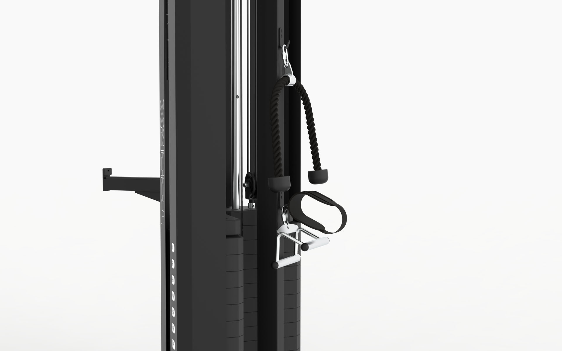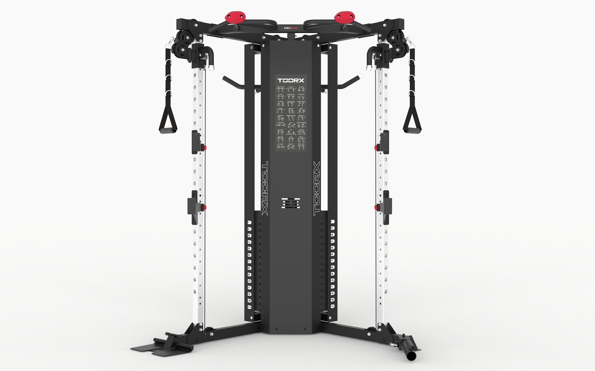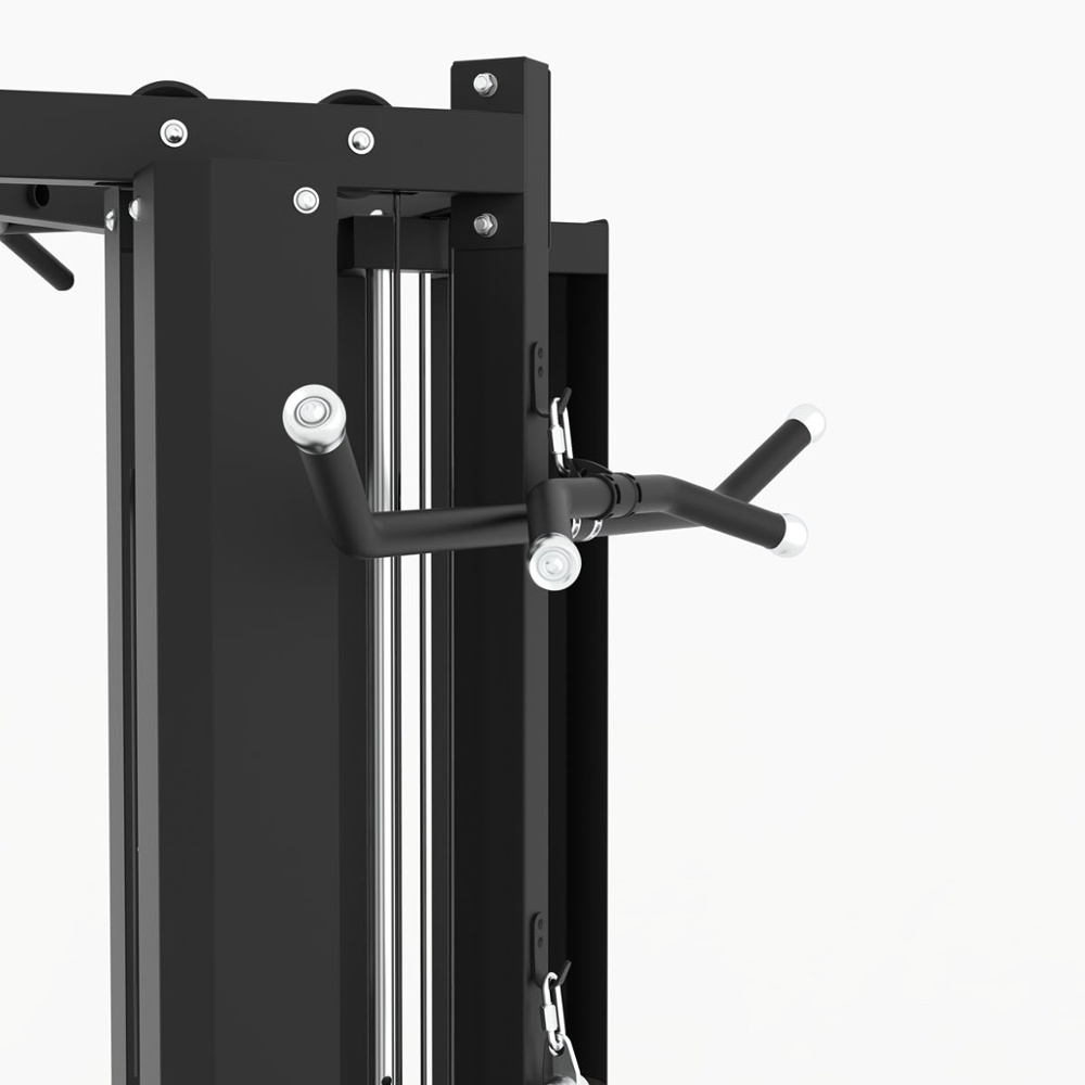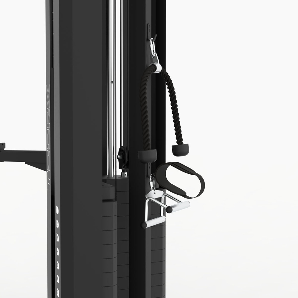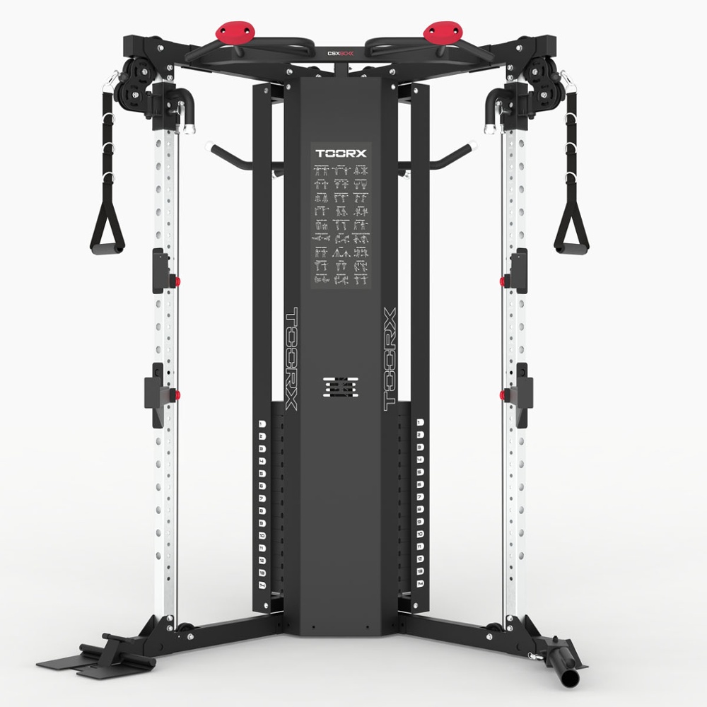 CSX 90 è innanzitutto, ma non solo, una dual pulley dotata di due pacchi peso da 75 kg. cadauno, completamente accessoriata e di grande qualità costruttiva, che si distingue per la possibilità di essere posizionata ad angolo tra due pareti, collocazione ideale per tutti gli ambienti d’allenamento nei quali lo spazio è una risorsa preziosa.
